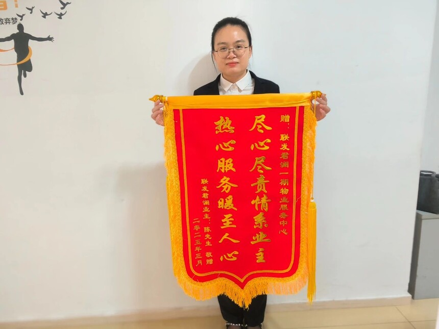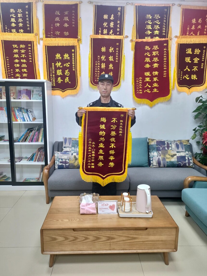 3月,陈先生因事无法接收托运的满满一货车物品,南宁联发·君澜物业工作人员毫不犹豫地伸出援手。面对繁多且体积庞大的货物,他们迅速分工协作,仅用1小时就完成卸货、清点和搬运入户。陈先生归家后满心感动,感慨道:“在最需要帮助的时候,是物业让我感受到了家的温暖。”他特地赠送锦旗,称赞物业团队无私奉献与专业服务。