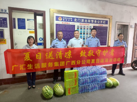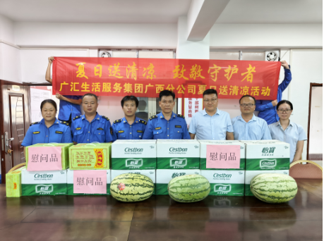 夏日送清凉 致敬守护者 在为小区业主送上清凉与健康的同时,广西分公司也深切关怀着社区和政府单位的一线工作者。八月份,广西分公司总经理李守强与副总经理周建分别在贵港和桂林开展了慰问活动。李总亲自带队,携带着精心准备的清凉物资,走访了政府单位和社区服务中心,向在高温下依然坚守岗位的工作人员表达了深切的感谢和崇高的敬意。“感谢广汇生活服务集团的关怀,这些清凉物资在炎热的天气里为我们带来了浓浓的暖意,也让我们更有动力投入到工作中。”一位社区工作人员感动道。在与一线工作者交流此次慰问活动时,李总表示:“一线工作者顶烈日、战高温,为城市运转和社区服务挥洒辛劳汗水,这份坚守值得我们所有人尊敬。希望这些清凉物资能为大家驱散暑热、补充能量,广汇生活服务集团广西分公司始终愿意与各位并肩同行,共同为居民创造更安心、更舒心的生活环境。”