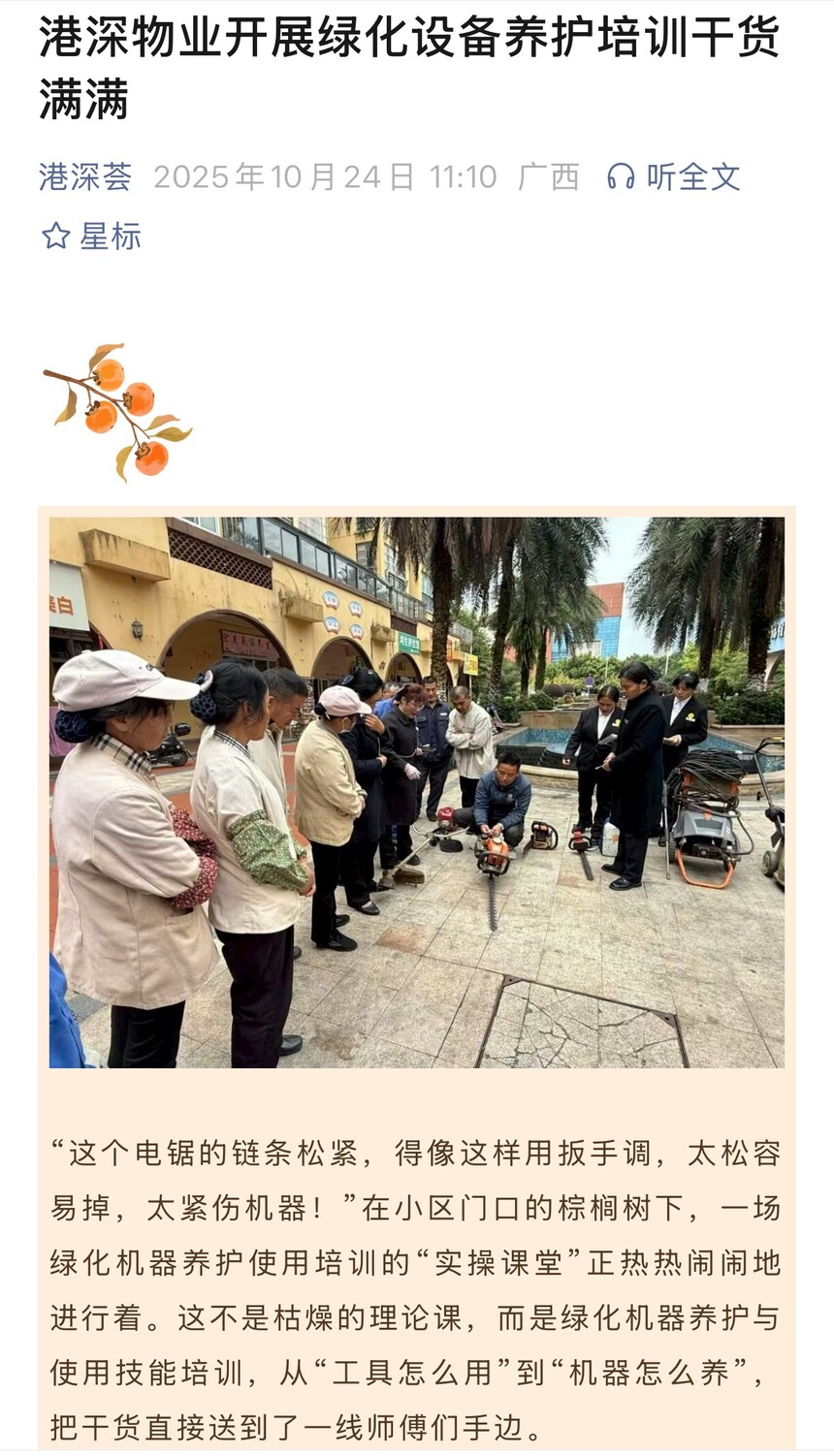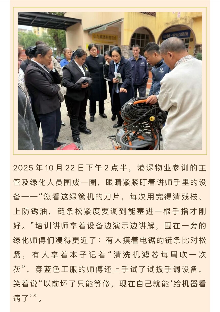 港深物业 ‖ 港深物业开展绿化设备养护培训干货满满