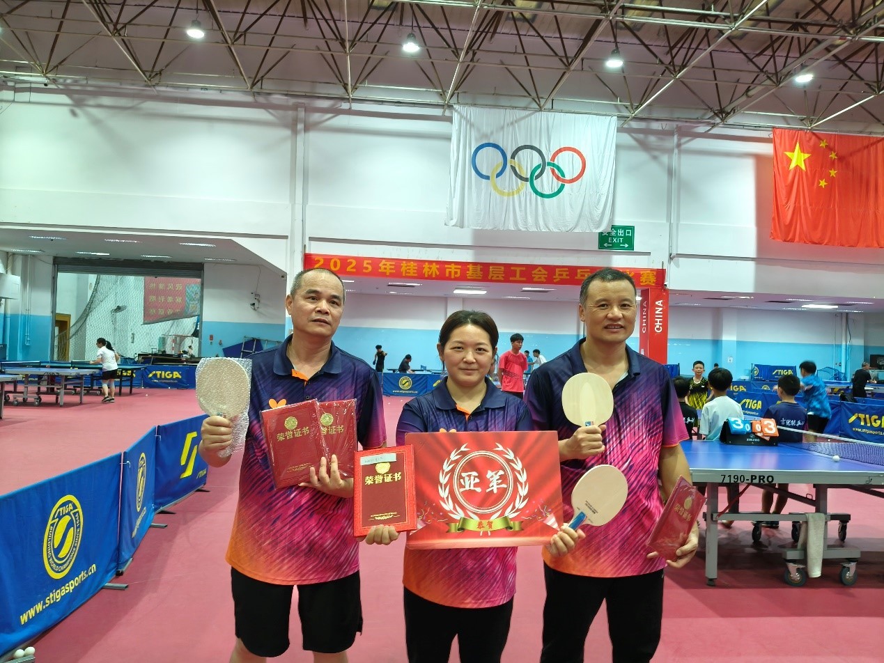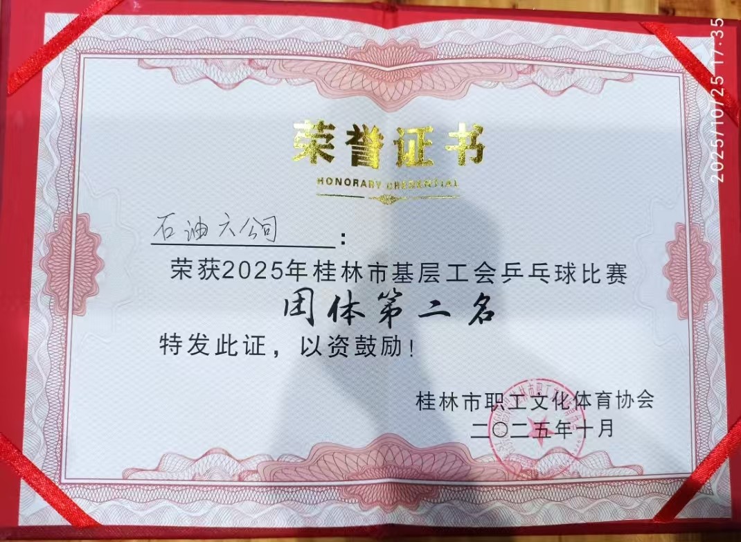 宝石花物业 || 石油六公司一队荣获桂林市基层工会乒乓球交流赛团体亚军,宝石花物业桂林分公司员工表现亮眼时间:2025-10-29 为庆祝中华全国总工会成立100周年,推动职工精神文明建设,2025年10月25日,由桂林市工人文化宫主办、市职工文化体育协会承办的"2025年桂林市基层工会乒乓球交流赛"在桂林甲天下国际会展中心吉优能球类训练中心圆满举行。本次赛事采用混合团体赛制,吸引了全市各基层工会代表队参赛。宝石花物业桂林分公司积极响应,同大业主单位六建精心组建了一支共同构成的联队,顺利通过参赛资格审核,携手出征本次赛事。 在激烈的比赛进程中,石油六公司一队凭借出色的团队协作与战术配合一路过关斩将。尤为值得一提的是,队中的分公司员工在赛场上发挥了积极的作用。在混双以及与男单的配合中,不仅技术扎实、反应敏捷,更以顽强的意志品质顶住了关键场次的压力,为团队贡献了至关重要的得分。这支物业与六建员工共同组成的队伍,将赛场上的默契演绎得淋漓尽致,他们的每一份拼搏都凝聚着团队的力量。最终,石油六公司一队成功斩获赛事团体亚军。 这一优异成绩的取得,是六建与物业分公司深厚情谊与高效协同的生动缩影。他们在赛场上的卓越表现,充分展现了其专业的素养和昂扬的精神风貌。此次联合组队参赛并荣获亚军,不仅极大地增强了团队的凝聚力和荣誉感,更成功谱写了一曲双方和谐共建、文体活动融合发展的动人乐章,为新时代职工文化建设留下了精彩的一笔。