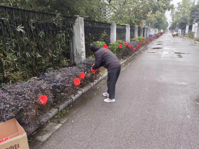 中鼎物业 || 巧手扮靓家园 年味温暖人心 ——中鼎物业联合雁山安居小区志愿者开展春节氛围布置活动 新春将至,年味渐浓。为营造喜庆祥和、温馨和睦的节日氛围,让雁山安居小区居民度过一个欢乐、暖心的2026年春节。近日,中鼎物业组织小区志愿者开展“迎新春、扮家园”氛围布置志愿服务活动,大家携手装点小区,用双手为家园换上喜庆“新年装”。 活动现场暖意融融、热闹有序。志愿者们早早集结,分工协作、默契配合,有的围坐在一起精心折叠红色纸灯笼,一折一粘,将美好祝愿融入每一件手工作品;有的登高挂饰、细心绑扎,把红彤彤的灯笼有序悬挂于小区树梢、花圃与主干道旁;还有的负责悬挂新春横幅、张贴福字与吉祥标语,让红色元素铺满小区各个角落。大家不畏严寒、干劲十足,脸上洋溢着笑容,用实际行动诠释“奉献、友爱、互助、进步”的志愿精神,也彰显了中鼎物业与居民们同心共建美好家园的责任与担当。