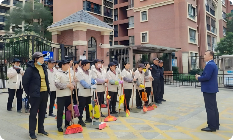在清扫现场,各项目员工热情高涨、分工协作,掀起“人人动手搞卫生、齐心协力迎新年”的劳动热潮。此次节前环境卫生大整治工作严格遵循“五清三化”工作标准,以“清洁园区、消除死角、营造氛围、提升服务”为核心目标,对小区内积存垃圾、杂物、白色垃圾、枯枝落叶以及业主节日期间高频触点等重点区域进行拉网式清理,全面提升环境整洁度与美观度,真正做到“横向到边、纵向到底,不留盲区、不漏死角”。经过数日集中整治,各项目环境面貌焕然一新,办公区域整洁有序,生活园区温馨舒适,公共设施光亮如新,路过的业主纷纷表示:“小区环境变整洁了,年味也更浓了,有广汇物业守护,这个年我们过得安心又舒心”。
