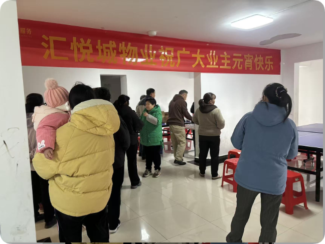 活动当天,小区活动现场早已被喜庆的红色装点得焕然一新。红灯笼高高挂起,五彩斑斓的灯谜纸条随风摇曳,既涵盖了传统字谜,又融入了生活常识、物业小知识,兼具知识性与趣味性,吸引着老老少少驻足围观。另一边,包汤圆的长桌整齐排列,糯米粉、黑芝麻、花生等食材一应俱全,工作人员提前做好了卫生防护,为业主们准备了一次性手套,确保大家吃得安心、玩得放心。