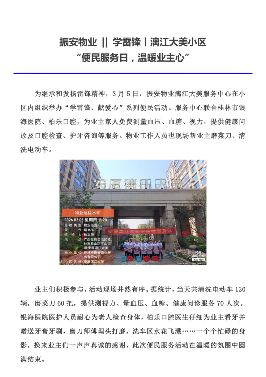 振安物业 || 学雷锋丨漓江大美小区——“便民服务日,温暖业主心”